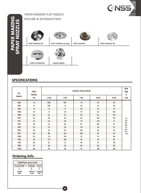 Applications: Used with the shower nozzle for pulp and paper industry.